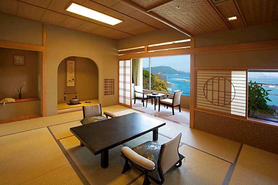 The air-conditioned suite features 2 bedrooms and 1 bathroom with a bath and a shower. The suite provides tatami, a tea and coffee maker, a wardrobe, a flat-screen TV, as well as sea views. The unit offers 2 beds and 2 futons.